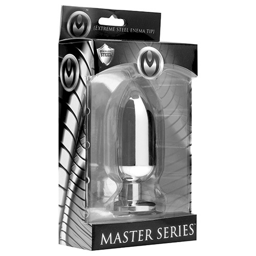 Magnus Stainless Steel Enema Tip, è un plug anale in acciaio, ampio, pesante, che può fungere da tappo in acciaio inox per il vostro lato b. Magnus è la scelta ideale per chiunque sia interessato a delle sessioni di clistere più pesanti, capaci di condizionare in positivo anche il desiderio più potente di dominazione. Il Magnus è ben realizzato per adattarsi alla maggior parte dei sistemi clistere esistenti. È sufficiente collegare un tubo alla base di Magnus, per godere di getti impertinenti di sottomissione. Inserendolo nel vostro ano potrete assaporare un mix sensuale di acciaio inossidabile e liquido, che a seconda del vostro volere potrà essere caldo o freddo. La punta affusolata e liscia, offre un facile inserimento, mentre la base svasata assicura che il plug rimanga saldamente al suo posto. L’acciaio inossidabile è non poroso, igienico, facile da sterilizzare. Potrete portare il gioco ad un livello successivo con delle variazioni termiche sensibili, riscaldandolo con acqua calda o raffreddandolo in frigorifero. Queste le misure: 10 cm di lunghezza totale, 9,1 cm inseribili, 3,9 cm di diametro. Master Series: si tratterà di un premio o di una punizione? Sarete voi a decidere!
